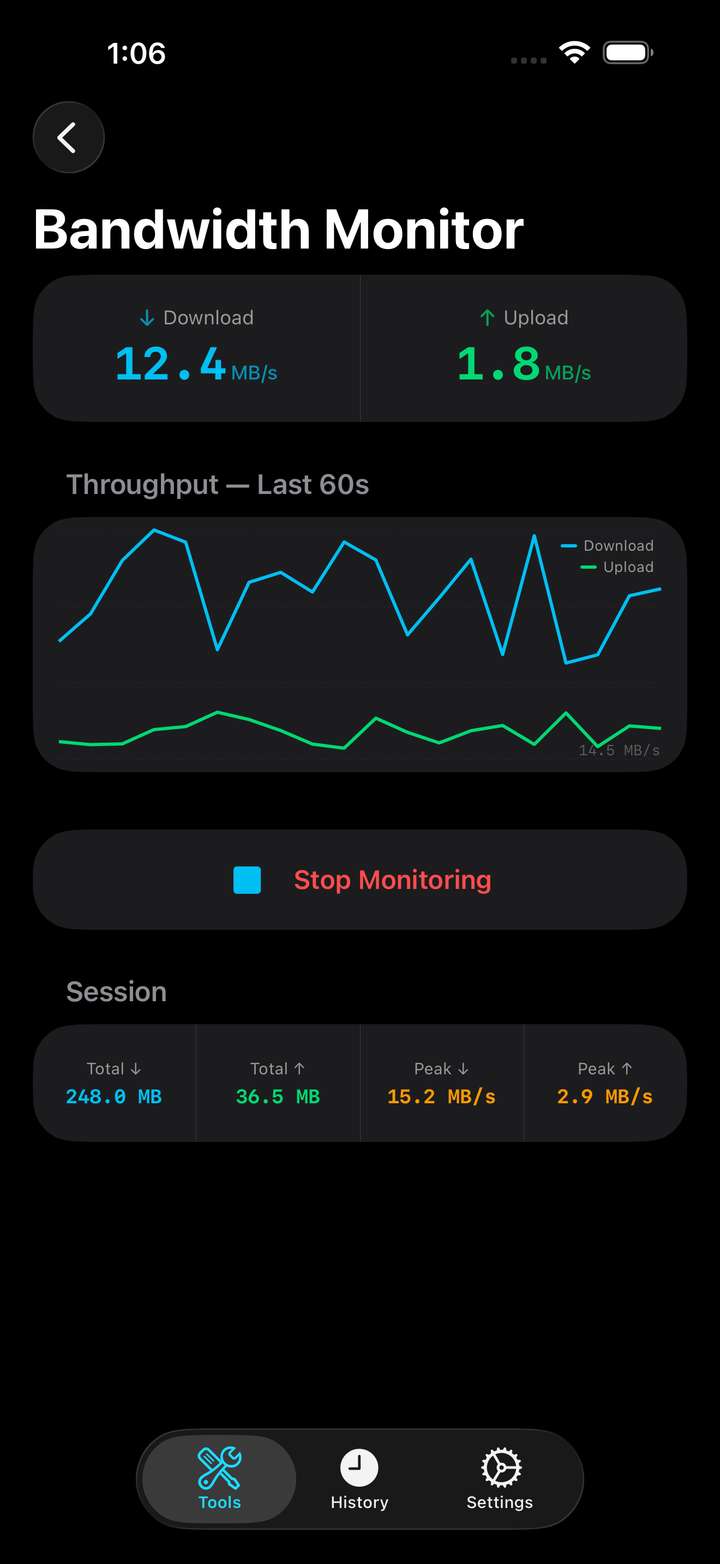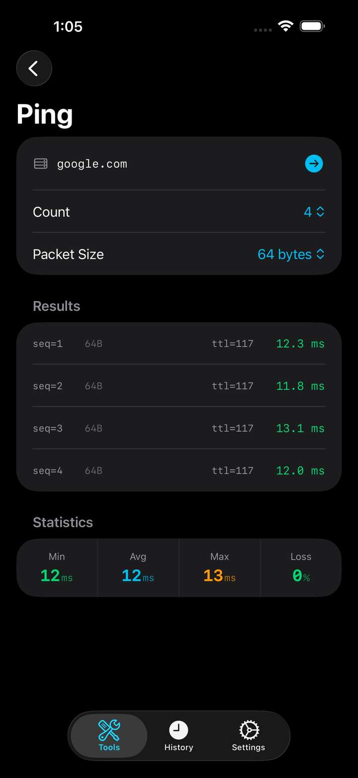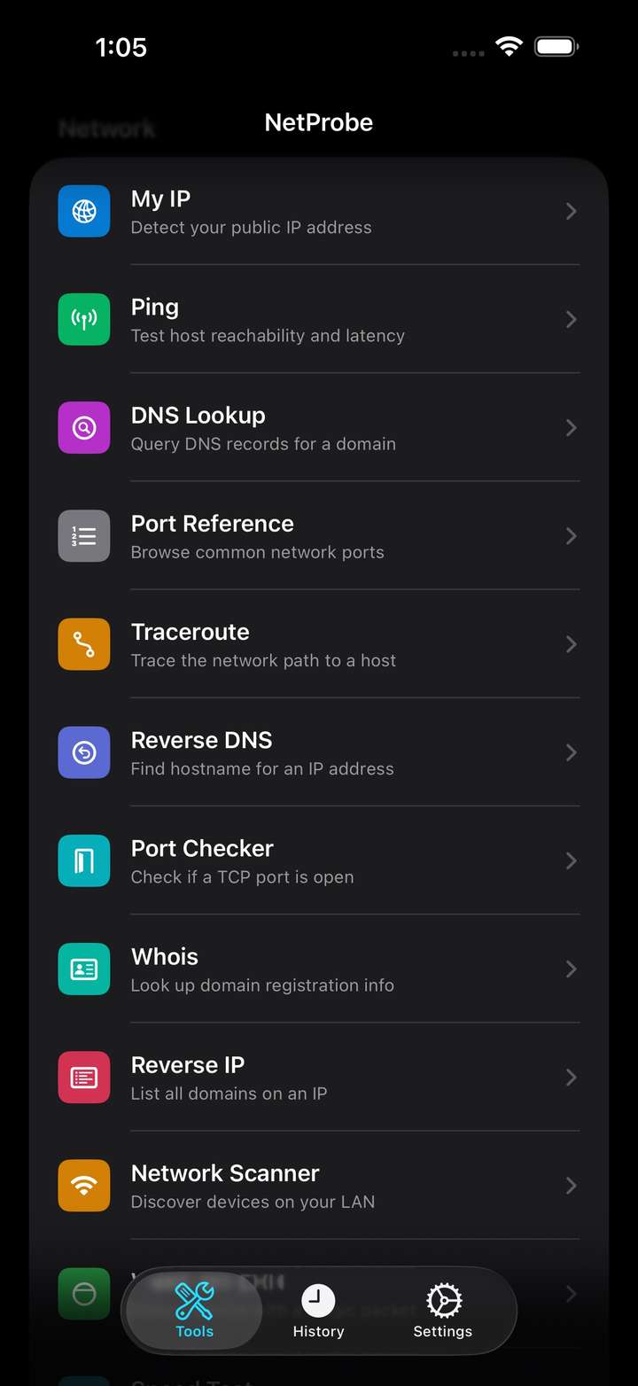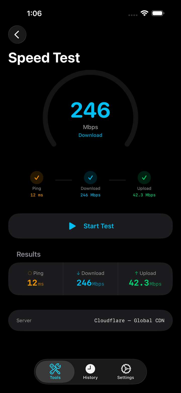 NetProbe is a comprehensive network diagnostics toolkit for iOS and macOS. Whether you're a network administrator, developer, or power user, NetProbe puts 18 professional-grade tools in your pocket.