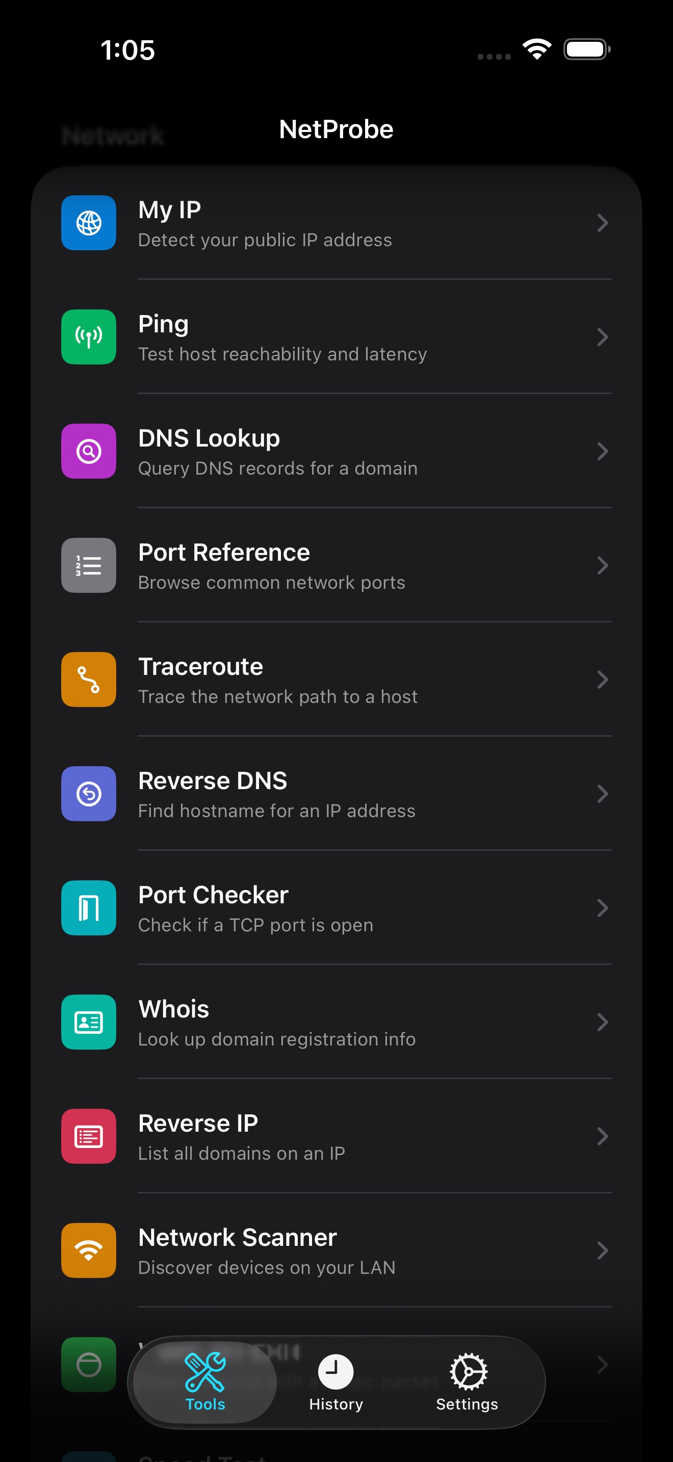 The App offers a selection of free tools. Additional tools are available through a one-time In-App Purchase ("NetProbe Pro"). Free users may preview Pro tools through a limited number of trial uses per tool. All purchases are processed by Apple and are subject to Apple's terms and refund policies.