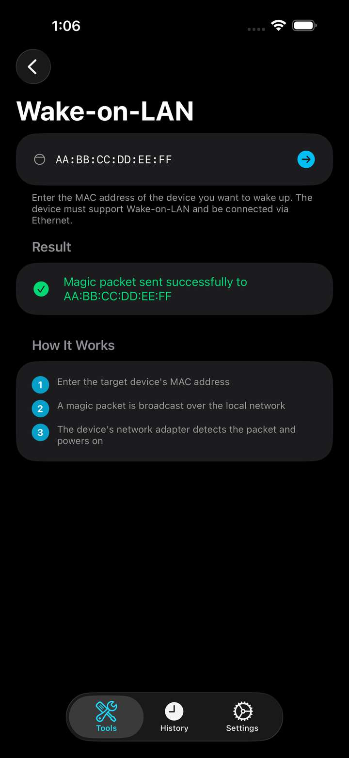 - Wake-on-LAN — Send magic packets to wake devices on your network