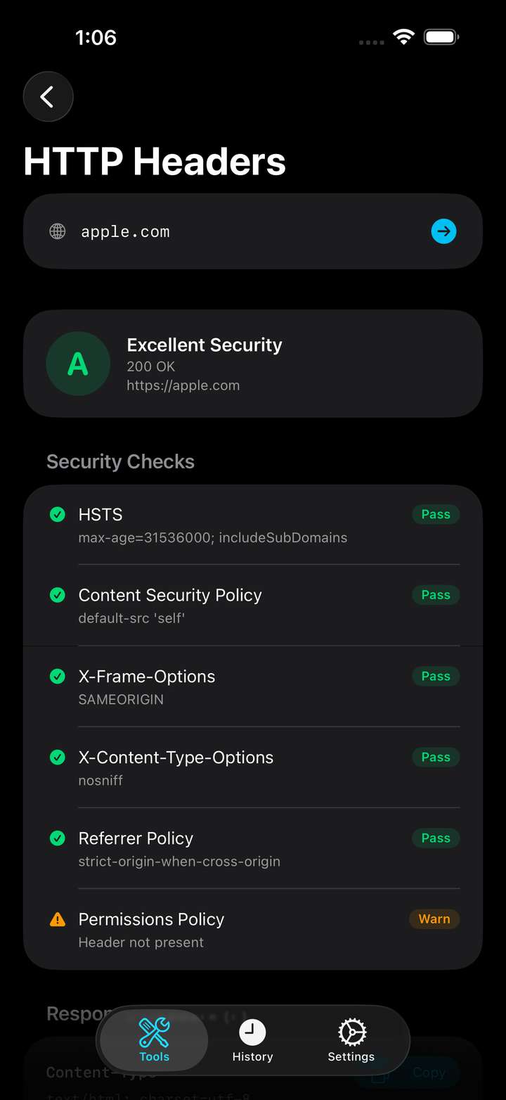 - HTTP Headers — Analyze response headers and security grades for any website