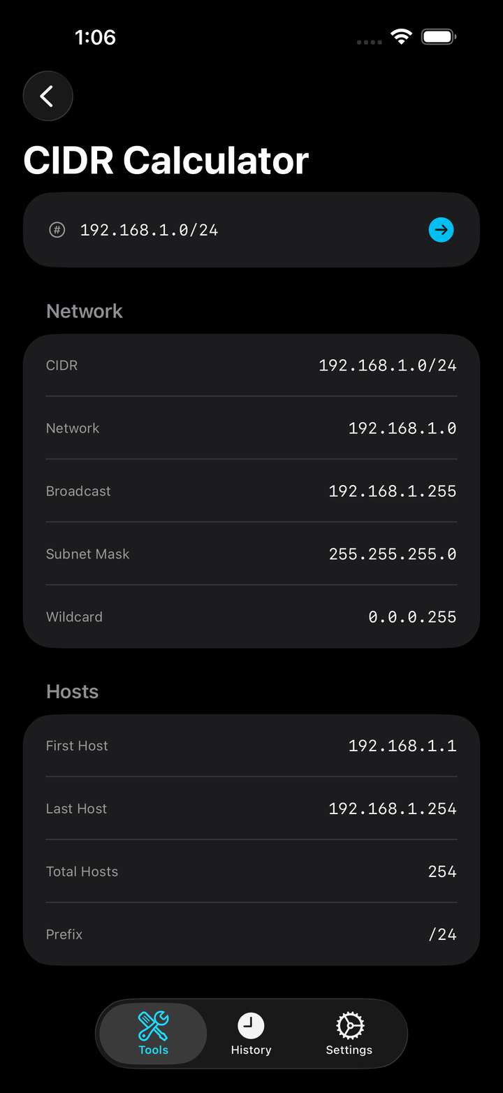 - CIDR Calculator — Calculate network addresses, broadcast addresses, and host ranges
