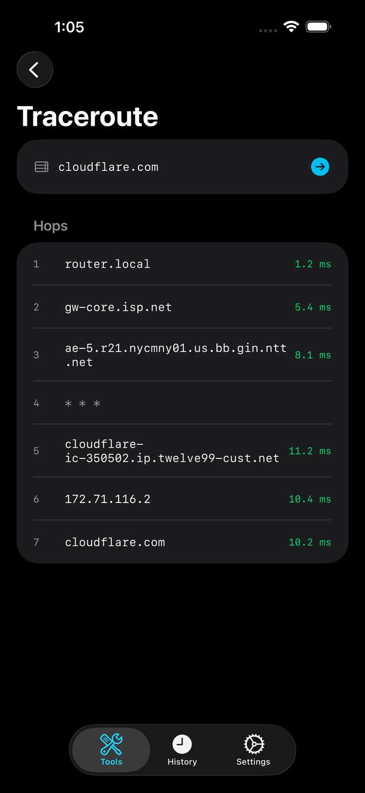 - Traceroute — Map the network path to any destination hop by hop