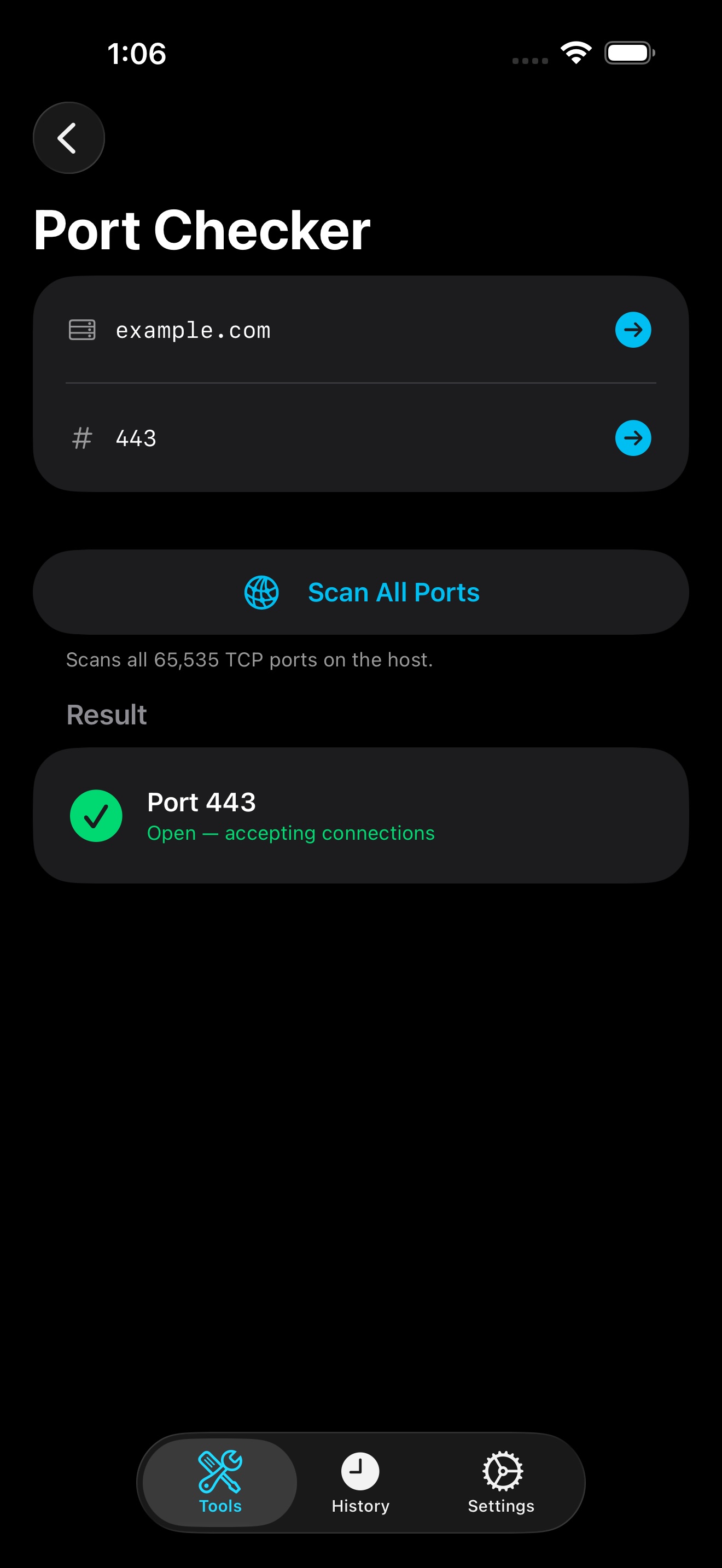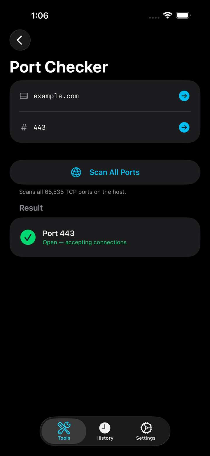 - Port Checker — Test whether a specific port is open on a remote host