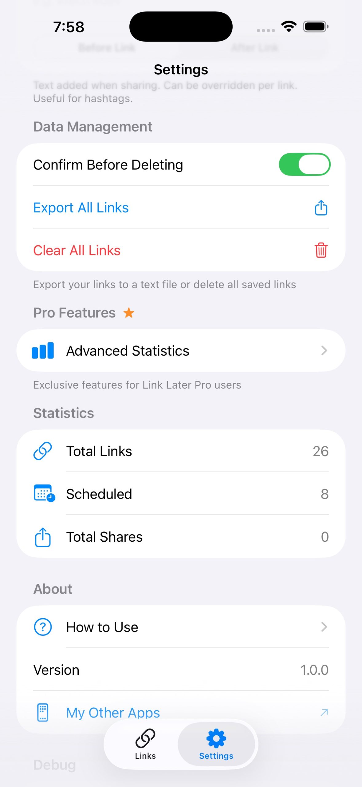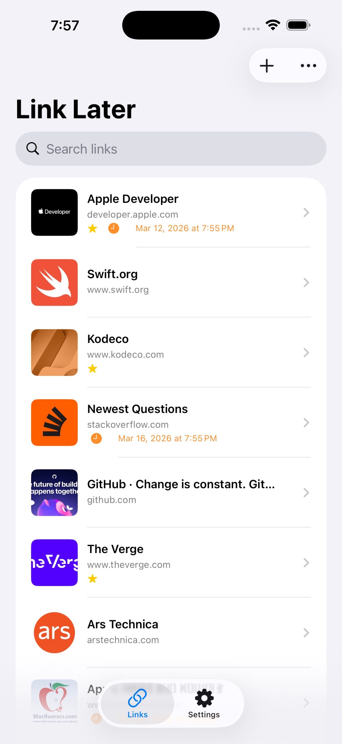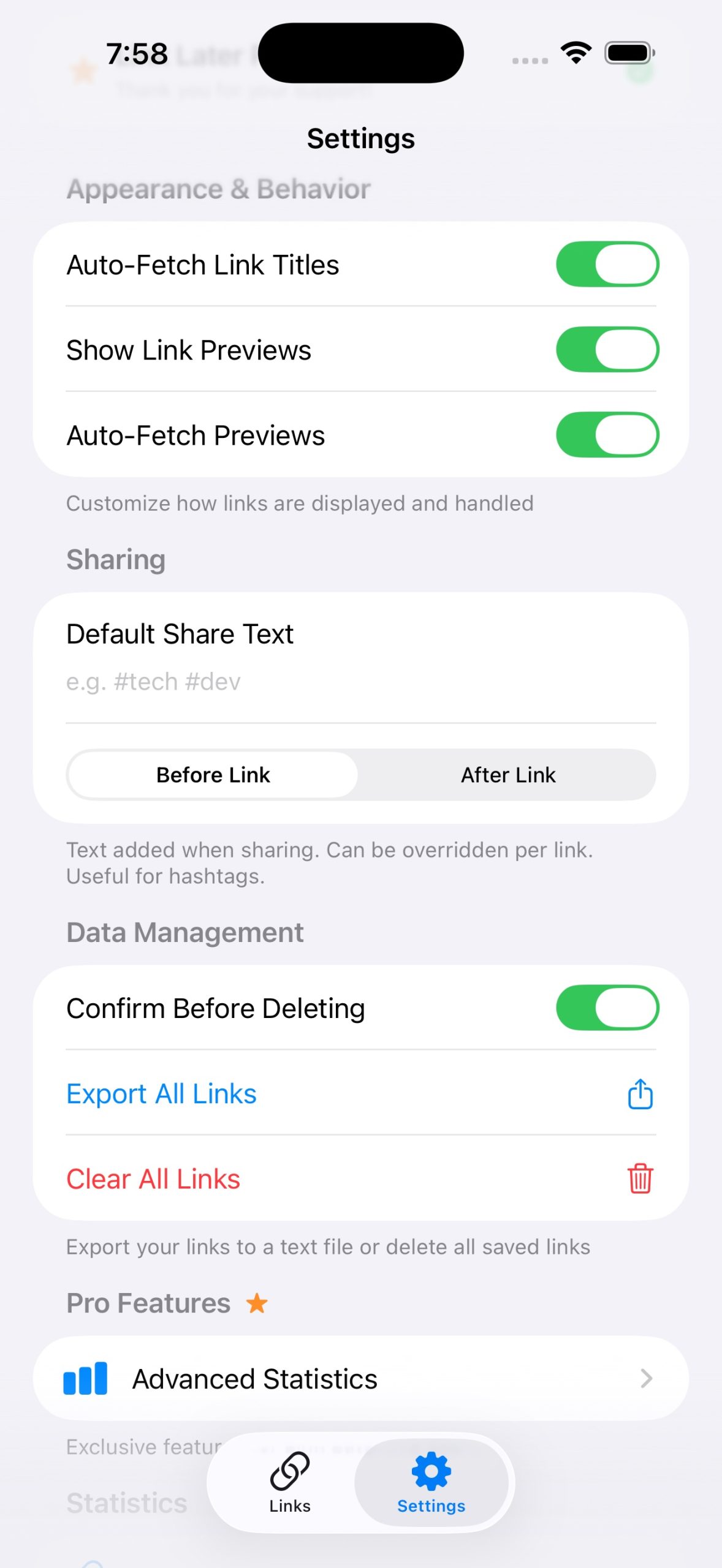 • Save links from any app using the Share Extension