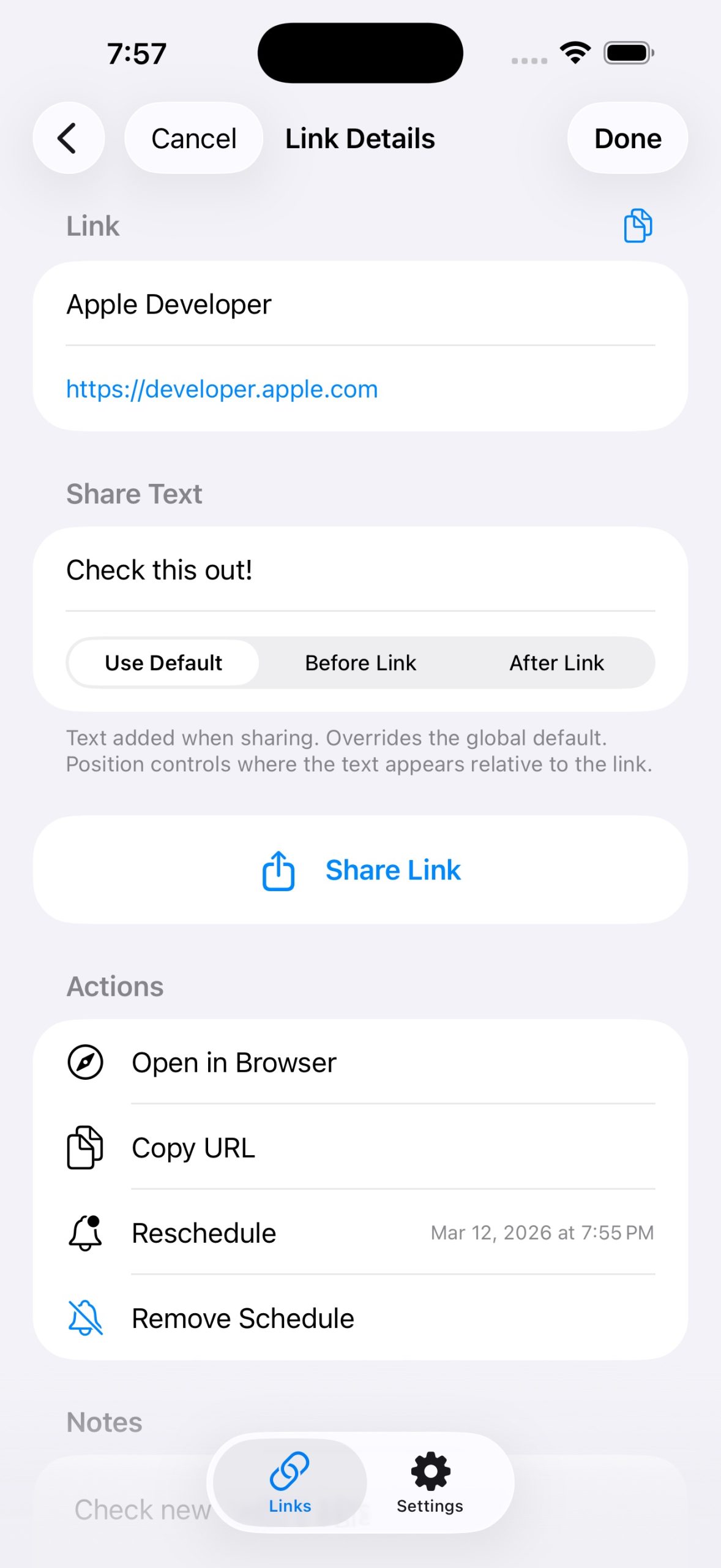 Link Later helps you save links from any app and share them when you’re ready. Whether it’s an article, video, or website — save it now, share it later.